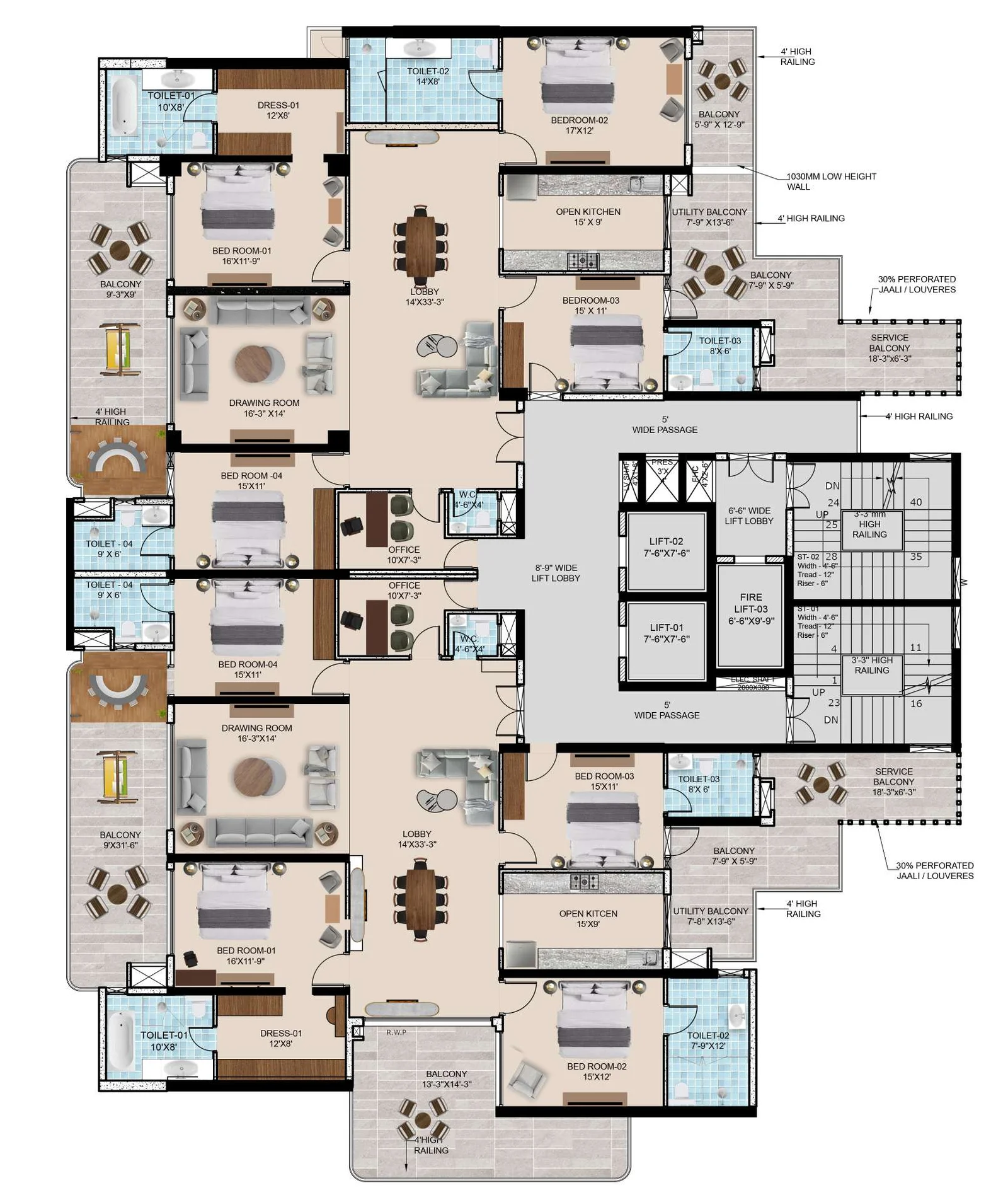 Be Tiara, developed by the Sham Exotic Group, is one of their high-end residential projects. It features a selection of opulent apartments and plots that vary in size from 4100 to 8000 square feet and offer 4 to 5 BHK configurations.