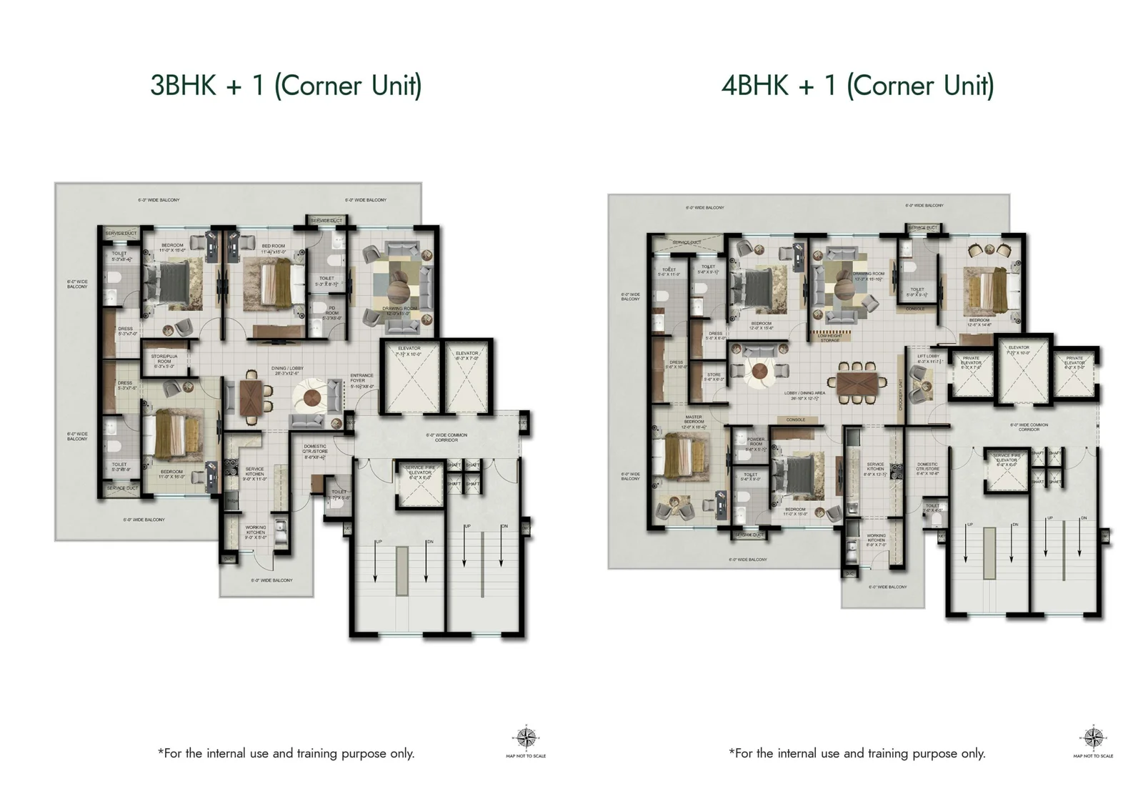 Windows : High Grade Aluminum or UPVC windows wherever required. Internal Doors: Laminated Doors.