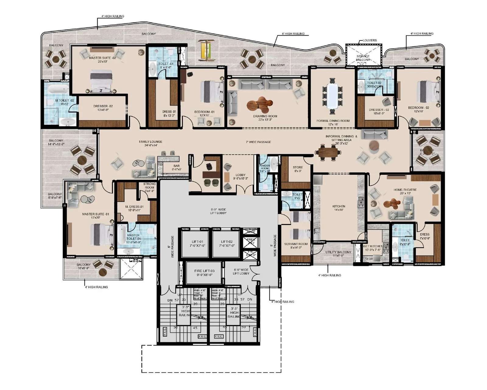 Be Tiara, developed by the Sham Exotic Group, is one of their high-end residential projects. It features a selection of opulent apartments and plots that vary in size from 4100 to 8000 square feet and offer 4 to 5 BHK configurations.